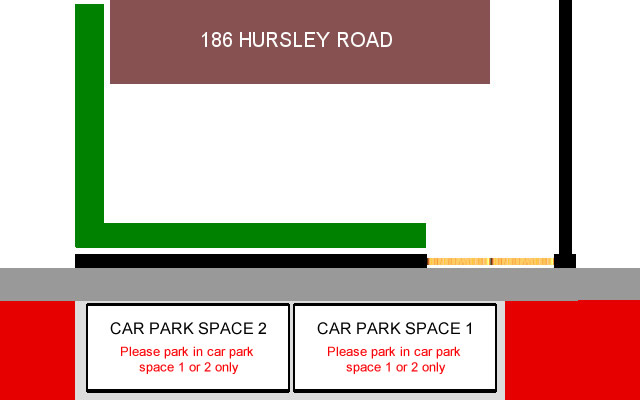 Yes, but due to a strict car parking policy for residents that is enforced by the local council and police, please only park in front of 186 Hursley Road. The diagram below illustrates where you may park.